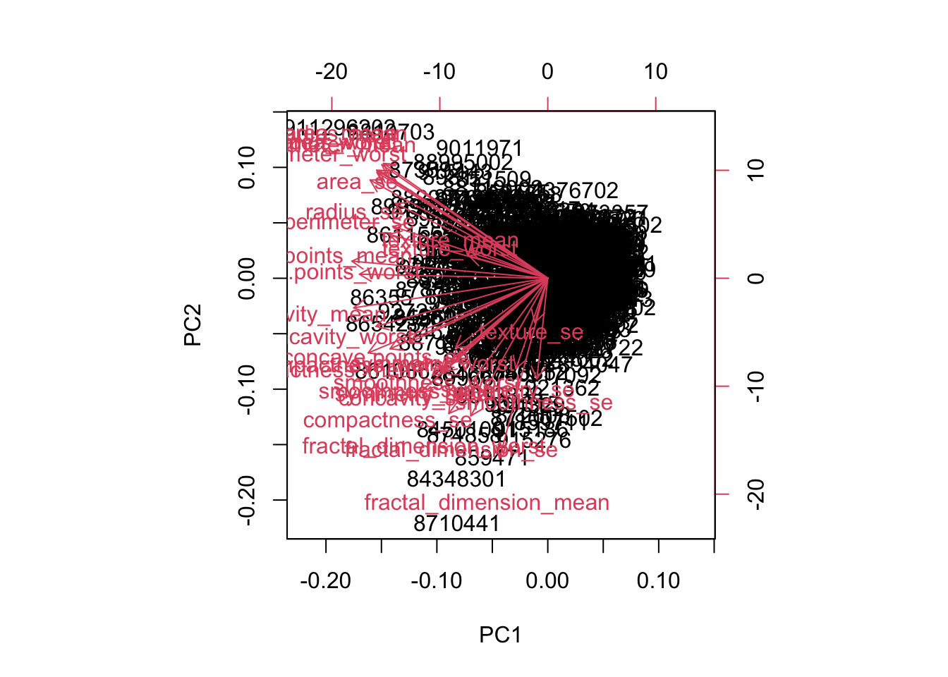 [23] "texture_worst" "perimeter_worst"