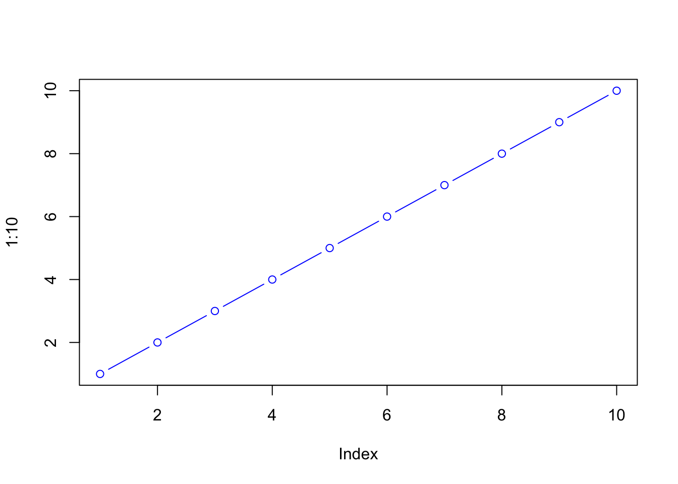 plot(1:10, col="blue", typ="b")
