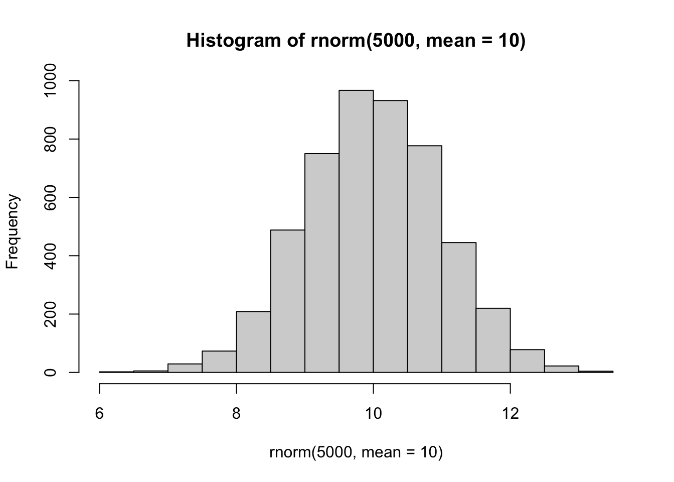 hist(rnorm(5000, mean=10))