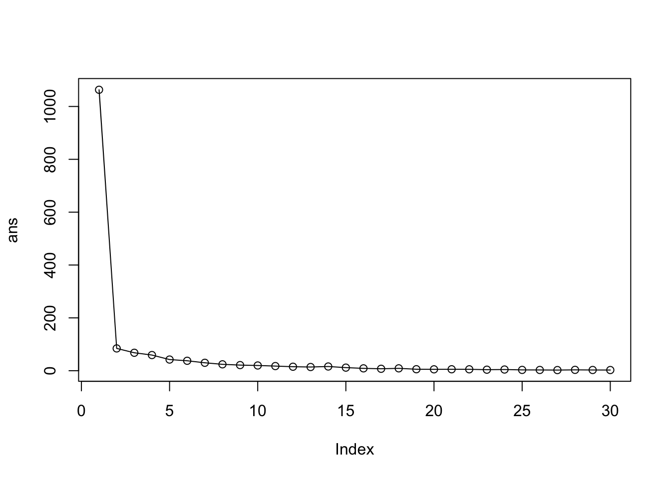 ans [1] 1063.213862 84.431200 68.017008 59.347180 42.329750 37.709515