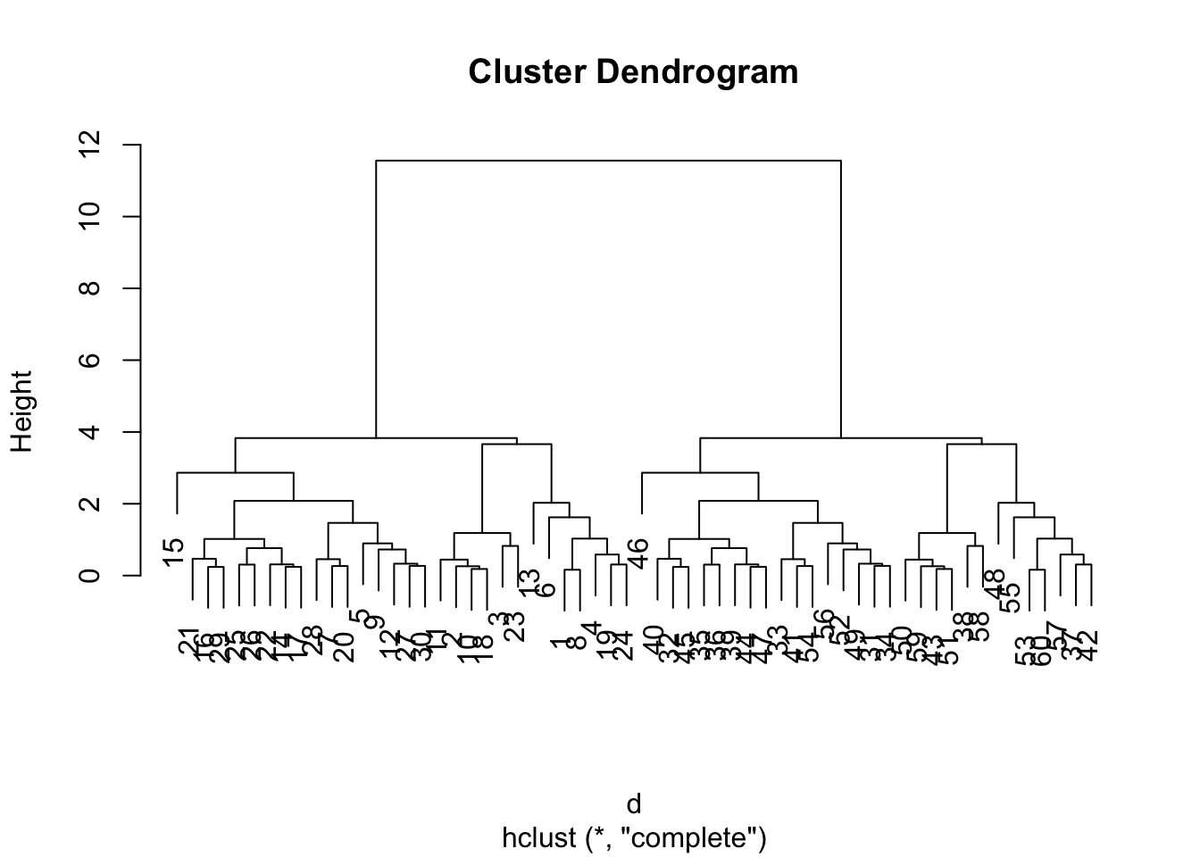 km$cluster [1] 1 1 1 1 1 1 1 1 1 1 1 1 1 1 1 1 1 1 1 1 1 1 1 1 1 1 1 1 1 1 2 2 2 2 2 2 2 2