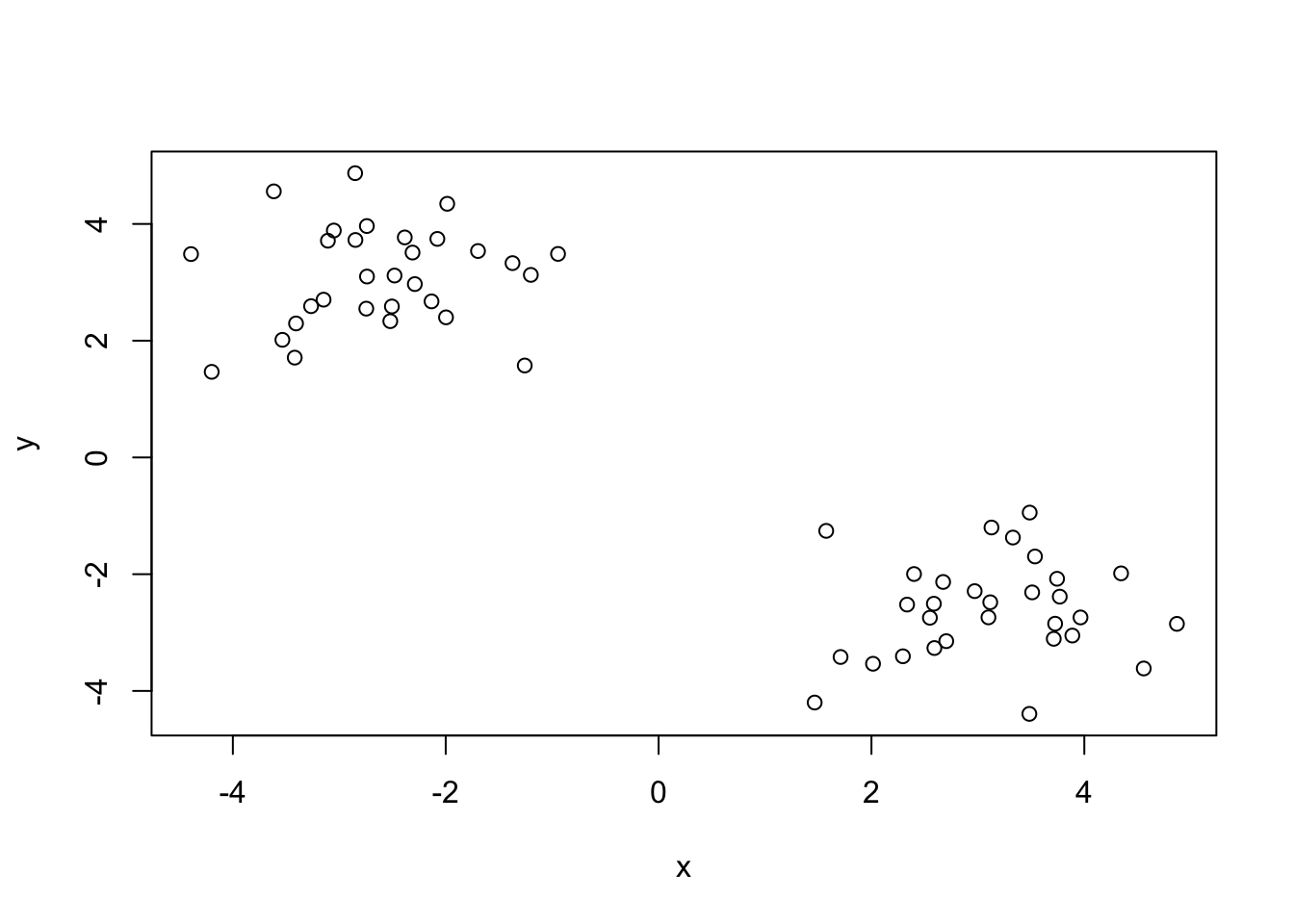 km<-kmeans(x,centers=2)